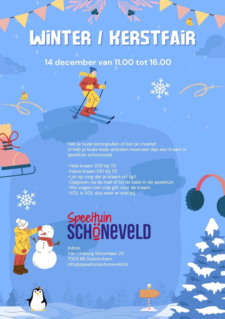 Speeltuin Schöneveld organiseert op zondag 14 december 2025 een kerstmarkt in de speeltuin. Hiervoor zoeken wij deelnemers. Zie bovenstaande flyer voor meer informatie.
